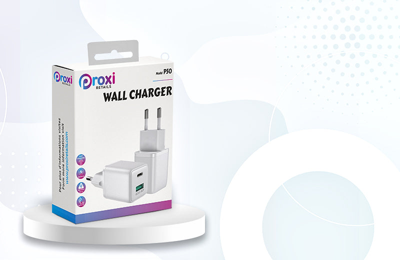 MAINS CHARGER 1 USB PORT AND 1 USB C PORT 3A P50 PROXI RETAILS