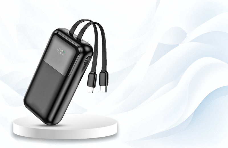 POWER BANK 2500MAH WITH INTEGRATED MICRO USB CABLE AND LIGHTNING CONNECTOR, BLACK-WAVE